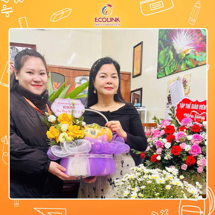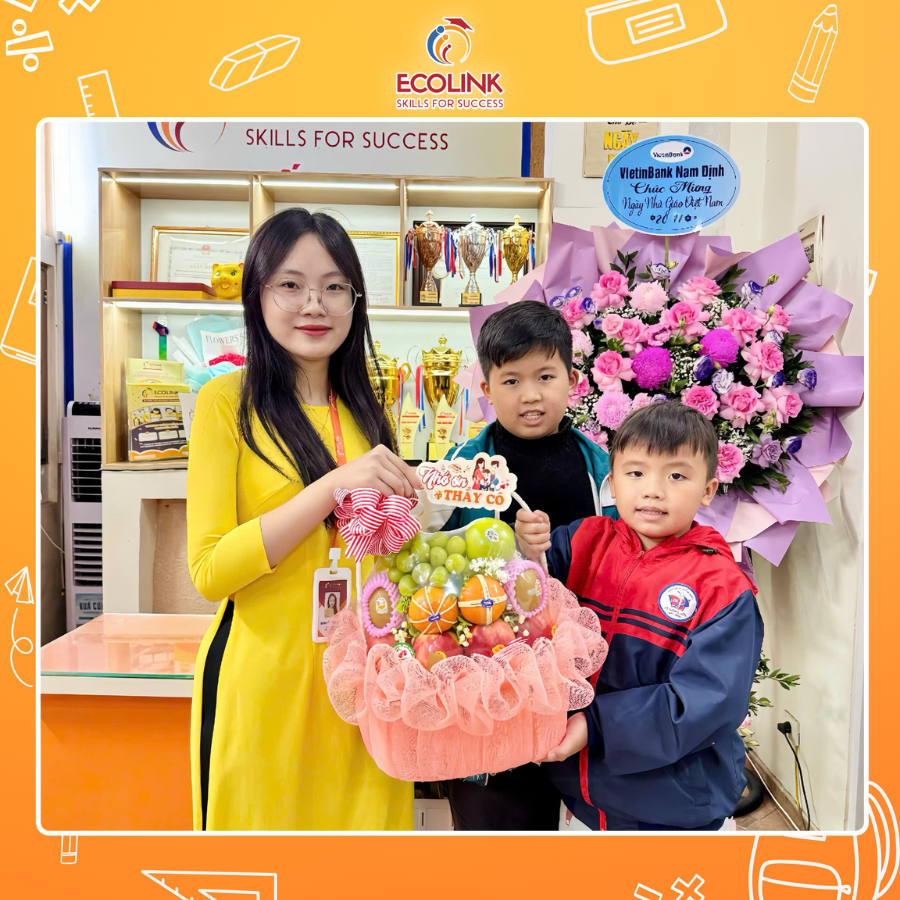 Không khí tri ân năm nay trở nên ấm áp hơn khi học viên và phụ huynh đồng loạt gửi lời chúc mừng ngày 20/11 đầy yêu thương đến thầy cô. Những bó hoa tươi, giỏ quà nhỏ xinh hay chỉ đơn giản là một lời chúc chân thành cũng đủ tạo nên khoảnh khắc xúc động trong từng lớp học. Đồng thời thể hiện sự biết ơn và thành công của Ecolink trong việc giáo dục, nuôi dưỡng các thế hệ học viên từng bước trưởng thành trong học tập và đạo đức.