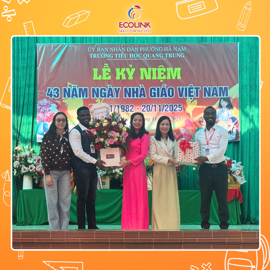 Trong gần một thập kỷ đồng hành cùng cộng đồng giáo dục, Ecolink tự hào sở hữu đội ngũ giáo viên 100% nước ngoài và giáo viên Việt Nam giàu kinh nghiệm chuyên môn. Mỗi giờ học, mỗi buổi giao lưu hay mỗi thành tựu của học viên đều in dấu sự tận tâm và trái tim yêu nghề của thầy cô. Bởi vậy, ngày 20/11 càng thêm ý nghĩa khi Ecolink thêm trân trọng nỗ lực ấy – nỗ lực của các thầy cô giáo đã góp phần tạo nên môi trường học tập nhân văn, hiện đại và hiệu quả.